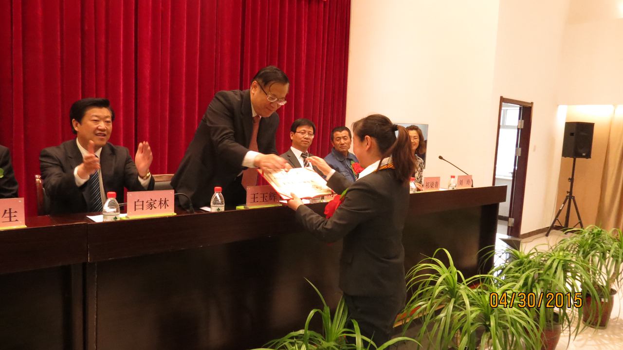集團總經(jīng)理王玉輝首先為榮獲"全國五一巾幗標(biāo)兵"榮譽稱號的青海物產(chǎn)汽車貿(mào)易有限公司銷售總監(jiān)劉少俠頒發(fā)了榮譽證書。
