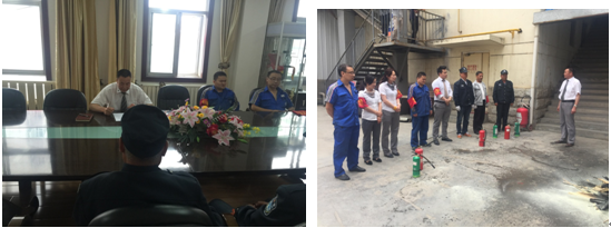 10:30時安全員和義務消防隊員們開始進行現(xiàn)場滅火演練,通過演習,大家掌握了滅火器和消防栓的使用方法。