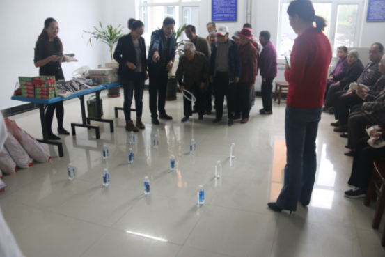 志愿者們?cè)诠ぷ魅藛T的帶領(lǐng)下,主動(dòng)攙扶老人有序進(jìn)入老年公寓食堂大廳。如果說幾十位老人是鮮花,那志愿者們便是襯托的綠葉,活動(dòng)中志愿者和老人們親切的融為一體,擊鼓傳花中老人們傳唱著他們那個(gè)時(shí)代熱愛生活的歌曲;套圈游戲老人們爭先恐后的排隊(duì),爭強(qiáng)好勝之心絲毫不遜年輕人;猜謎游戲更是激烈,志愿者在一旁充當(dāng)著小助手,互動(dòng)游戲環(huán)節(jié)老人們積極踴躍參與其中,歡聲笑語不絕于耳……