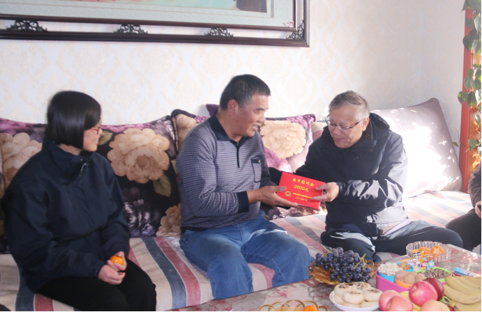 在退休老黨員、老勞模毛敏生和馮芳才家中,王玉輝書記與他們拉起家常,詢問他們的身體狀況和家庭情況,感謝他們?yōu)榍嗪N锂a(chǎn)發(fā)展所做出的努力和貢獻,并代表集團黨委送上組織的關懷和美好新春祝福。