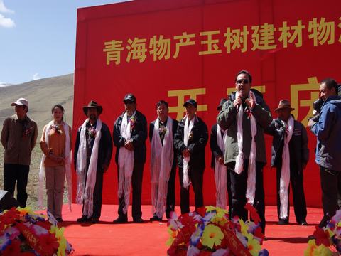 省玉樹地震災后重建現(xiàn)場指揮部指揮長、副省長馬順清宣布建材物流集散中心正式開工并講話。省政府副秘書長巨偉、省經委、省城鄉(xiāng)住房建設廳、西寧市政府、玉樹州政府相關部門、玉樹縣有關負責同志,省物產集團總經理王玉輝、黨委書記白家林、副總經理物產化工公司董事長耿保平等參加了開工儀式。