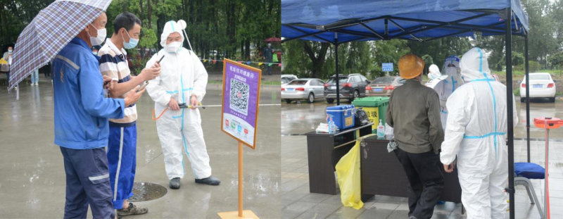 清晨,在綿綿細雨中園區(qū)新一輪區(qū)域核酸檢測有序推進,核酸檢測點搭起遮雨帳篷,公司廣大黨員干部奮勇?lián)敍_鋒在前,維護秩序、進行掃碼,醫(yī)護人員快速有效地采集核酸。大家上下同心、通力配合,有序高效的進行核酸檢測,僅用了三個多小時就全面完成了園區(qū)人員核酸采樣工作。據(jù)統(tǒng)計,本次核酸檢測共有1103名干部職工及外租單位人員參加,檢測結(jié)果全部為陰性。