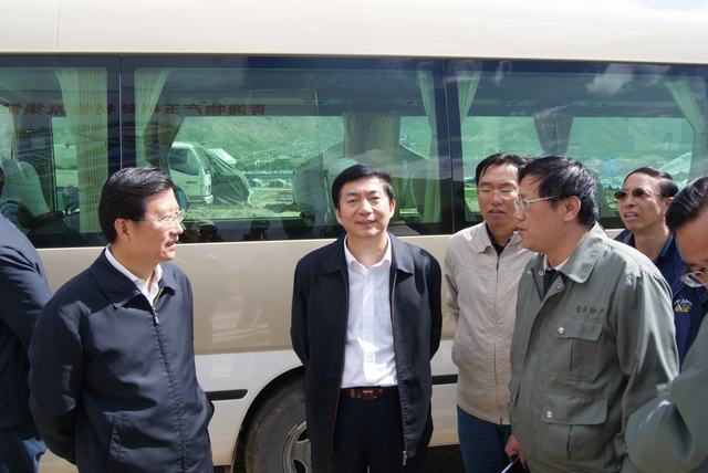 6月19日,中共中央政治局委員、國務(wù)院副總理、國務(wù)院抗震救災(zāi)總指揮部總指揮回良玉率領(lǐng)相關(guān)部委領(lǐng)導(dǎo),在青海省委書記強衛(wèi)、省長駱惠寧、副省長馬順青的陪同下,來到正在晝夜施工建設(shè)的青海物產(chǎn)玉樹建材物流集散中心,視察災(zāi)后重建物資儲備情況和集散中心工程建設(shè)情況。集團總經(jīng)理王玉輝向中央領(lǐng)導(dǎo)和省領(lǐng)導(dǎo)詳細匯報了建材物流集散中心建設(shè)規(guī)模和鋼材、水泥、木材三大類物資收儲情況。同時表示,青海省物產(chǎn)集團總公司將一如既往,全力以赴支援玉樹災(zāi)后重建,與各路建設(shè)大軍一道,為建設(shè)美好綠色新玉樹貢獻力量。聽完匯報,回良玉副總理非常高興,并做出重要指示,要做好統(tǒng)籌組織建材物資的采購和調(diào)運工作,努力保障供應(yīng),確保質(zhì)量,降低成本?;亓加窀笨偫砑笆☆I(lǐng)導(dǎo)與集團領(lǐng)導(dǎo)、工作人員合影留念。