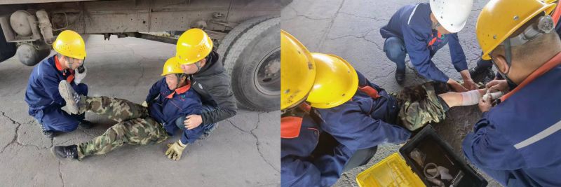 機(jī)械傷害是安全生產(chǎn)人身傷亡事故中最常見(jiàn)的事故類(lèi)型,組織職工開(kāi)展應(yīng)急演練,是避免和減少此類(lèi)事故發(fā)生的重要途徑。為確保此次演練取得預(yù)期效果,配送公司裝卸作業(yè)部提前制定方案,成立安全小組,明確職責(zé)分工,并組織參演人員進(jìn)行演練前培訓(xùn),細(xì)化各環(huán)節(jié)步驟。此次演練模擬作業(yè)人員在庫(kù)區(qū)作業(yè)吊裝貨物時(shí),因自身麻痹大意導(dǎo)致被貨物撞擊致傷,造成機(jī)械傷害的場(chǎng)景。在警戒組、應(yīng)急救援組、檢查組、后勤保障組等各參演人員的密切協(xié)作下,圓滿完成了此次演練任務(wù)。