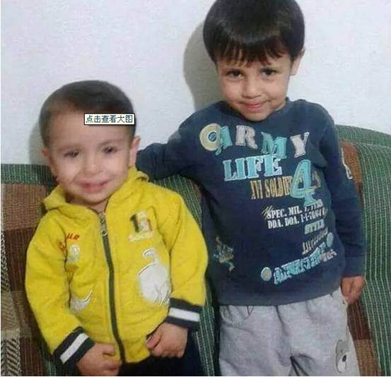 3歲的Aylan(左)和他5歲哥哥Galip(右)的合影