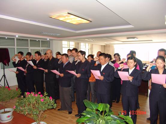 我宣誓:"我志愿加入中國共產(chǎn)黨,擁護(hù)黨的綱領(lǐng),遵守黨的章程,履行黨員義務(wù),執(zhí)行黨的決定,嚴(yán)守黨的紀(jì)律,保守黨的秘密,對(duì)黨忠誠,積極工作,為共產(chǎn)主義奮斗終身,隨時(shí)準(zhǔn)備為黨和人民犧牲一切,永不叛黨"。6月29日上午10∶00時(shí),17名新加入黨組織的中國共產(chǎn)黨預(yù)備黨員、所屬各黨組織書記、老黨員代表等30余人的莊嚴(yán)宣誓,標(biāo)志著青海物產(chǎn)系統(tǒng)慶祝建黨91周年系列活動(dòng)正式展開。